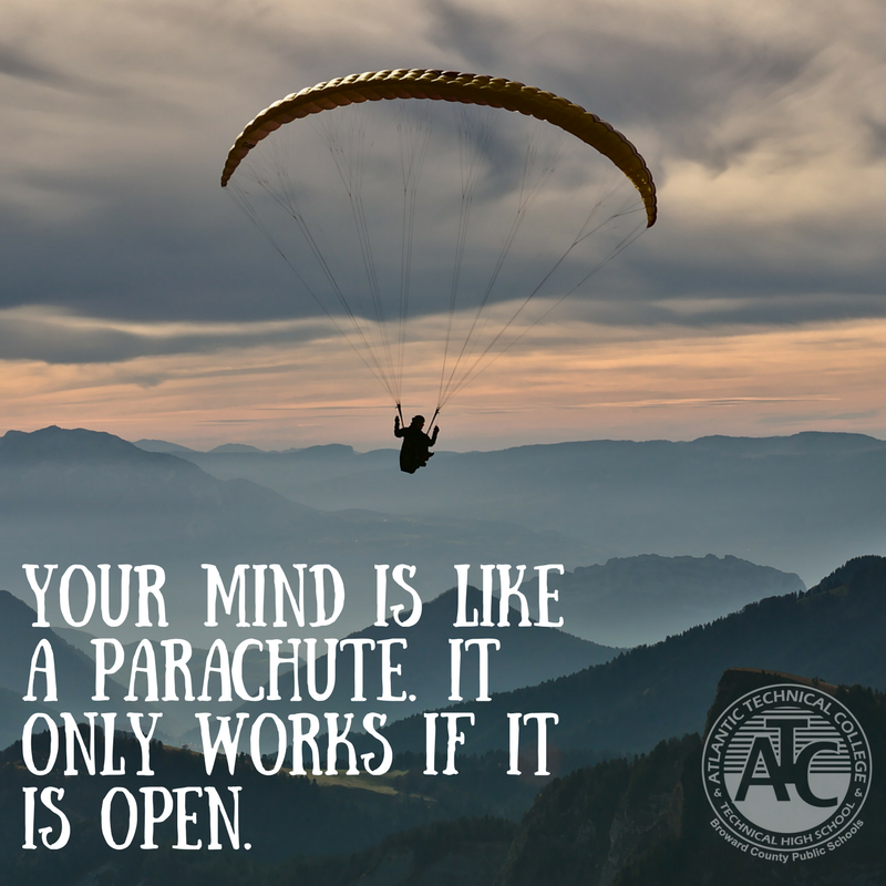 Your mind is like a parachute it only works when it is open. It only works when it is open. Now the complete saying is Your mind is a parachute it only works when its open Think about that for a second. How many times have you shut down an idea right away before you even gave it a chance.