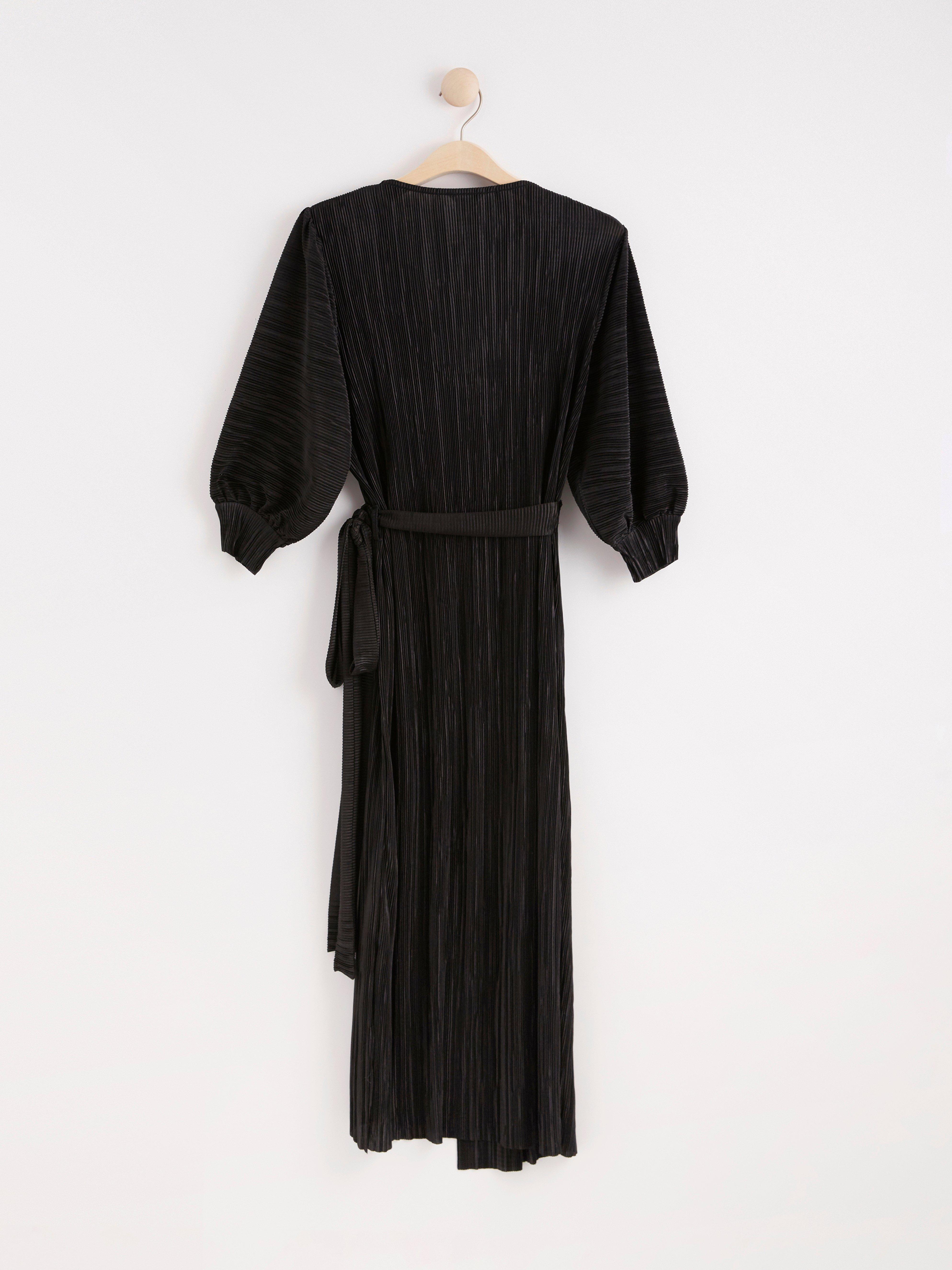 Black Pleated Wrap Dress