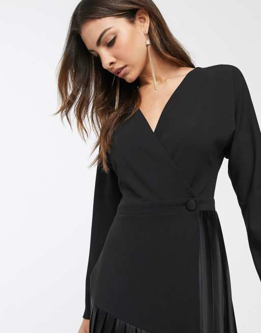 We never tire of a little black dress especially one as effortless as this. Black XL - 3990. Deep V Neck Ruffle Dress for Women Loose Balloon Long Sleeve Swing Dress Pleated Loose Patchwork Dress. With a wrap top and pleated skirt pair with heels to finish the look. Satin Pleated Wrap Dress In Ivory At Nordstrom Rack - White. Confira As Ofertas de Brinquedos. Remove from Saved Items. Plunging slim lapel neckline. 38 out of 5 stars 25.