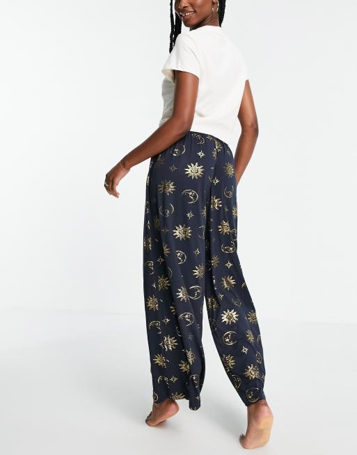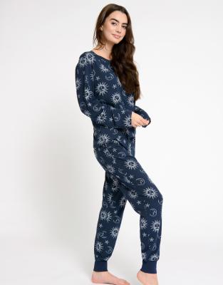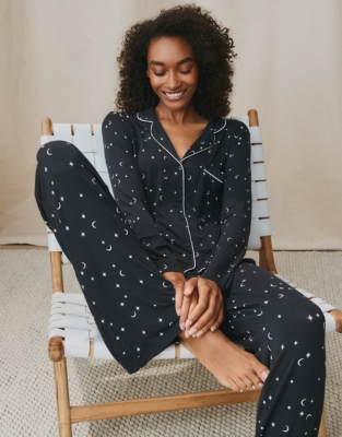 Moon and star pajamas. Matching Lanz Sleeping Moon and Stars Nightgown 75684 sold separately. 27 long Elastic-waist bottoms with side seam pockets and satin piping approx. Team with the co-ordinating pyjama top or one of our mix-and-match Henleys.